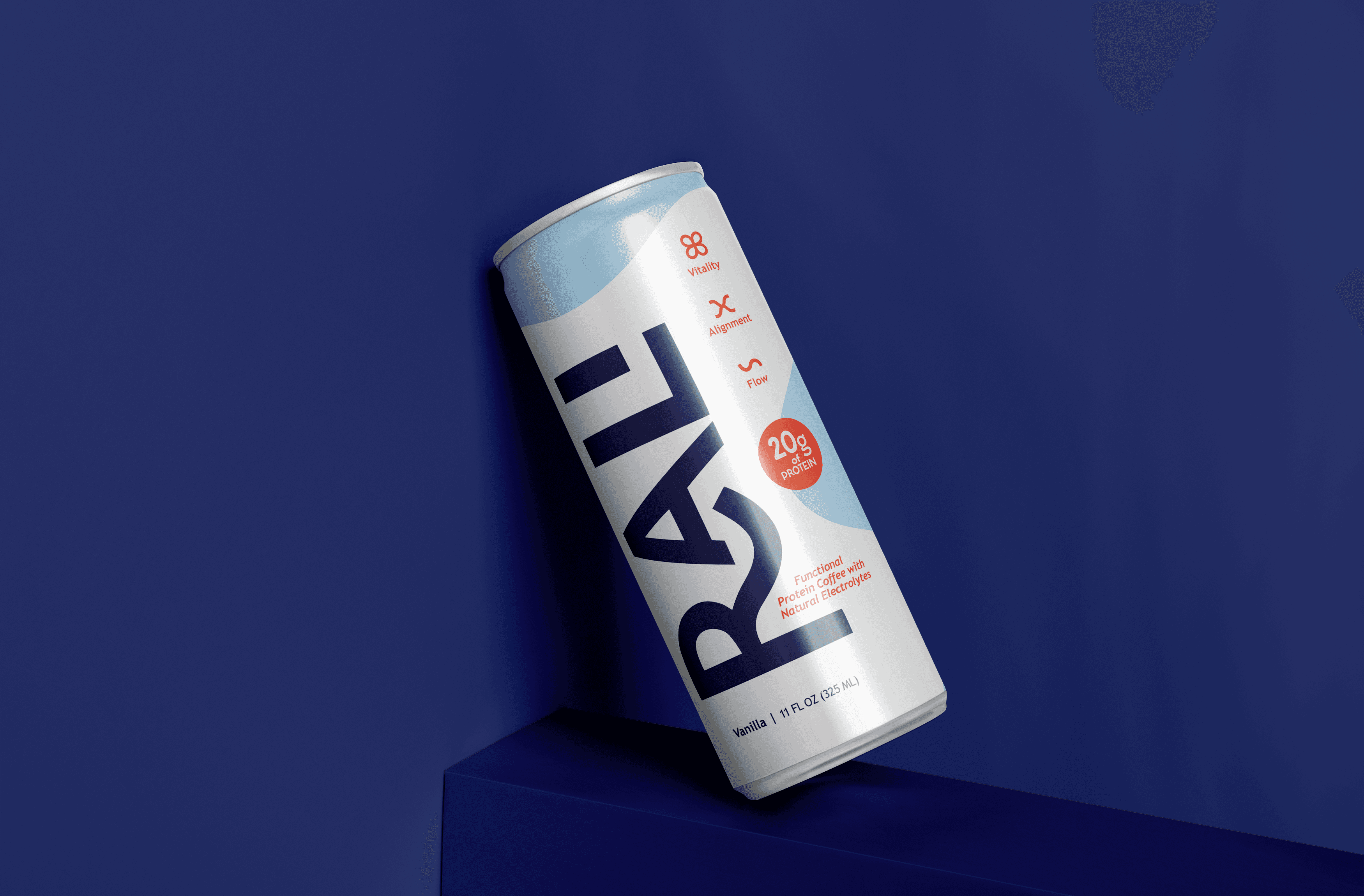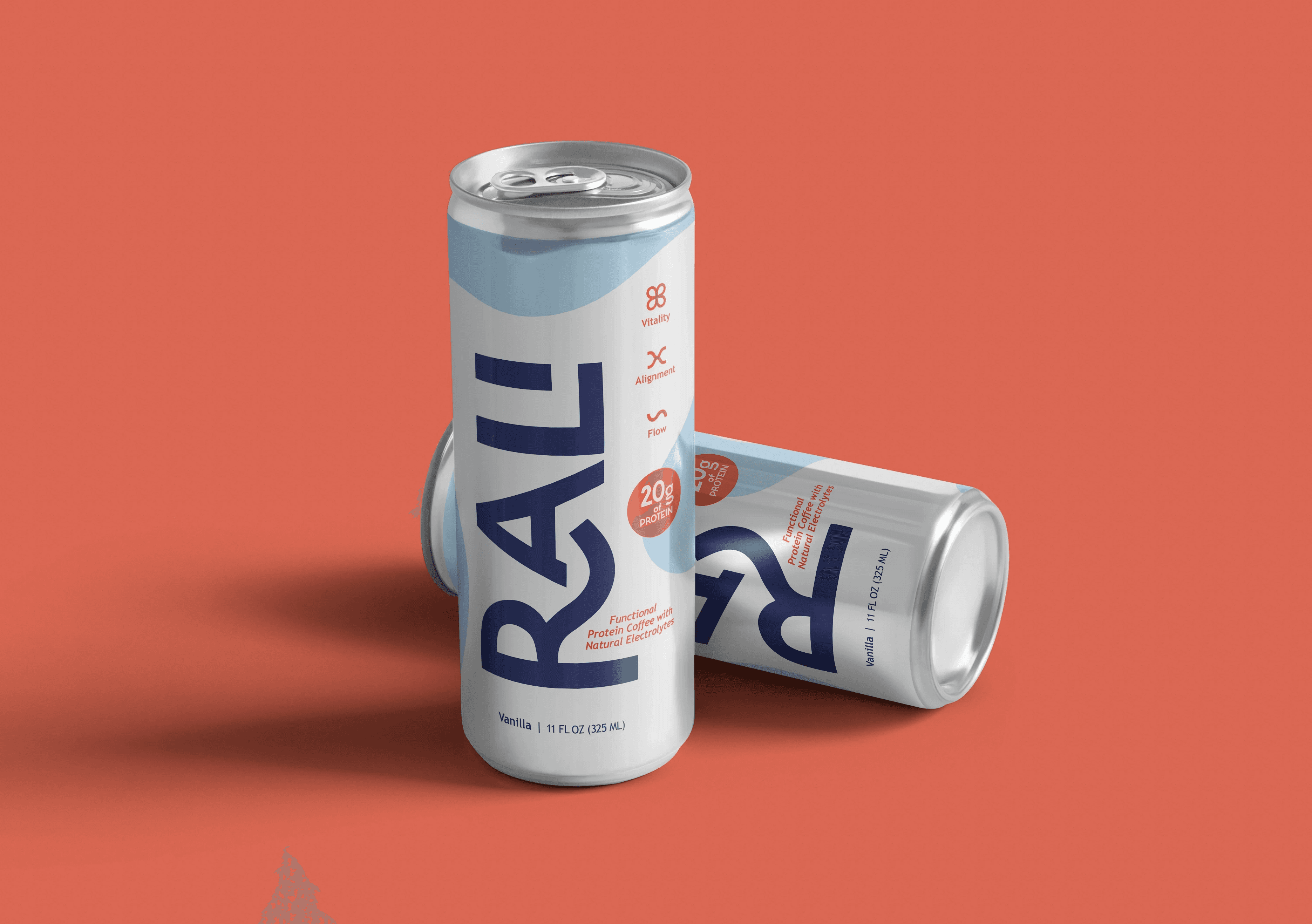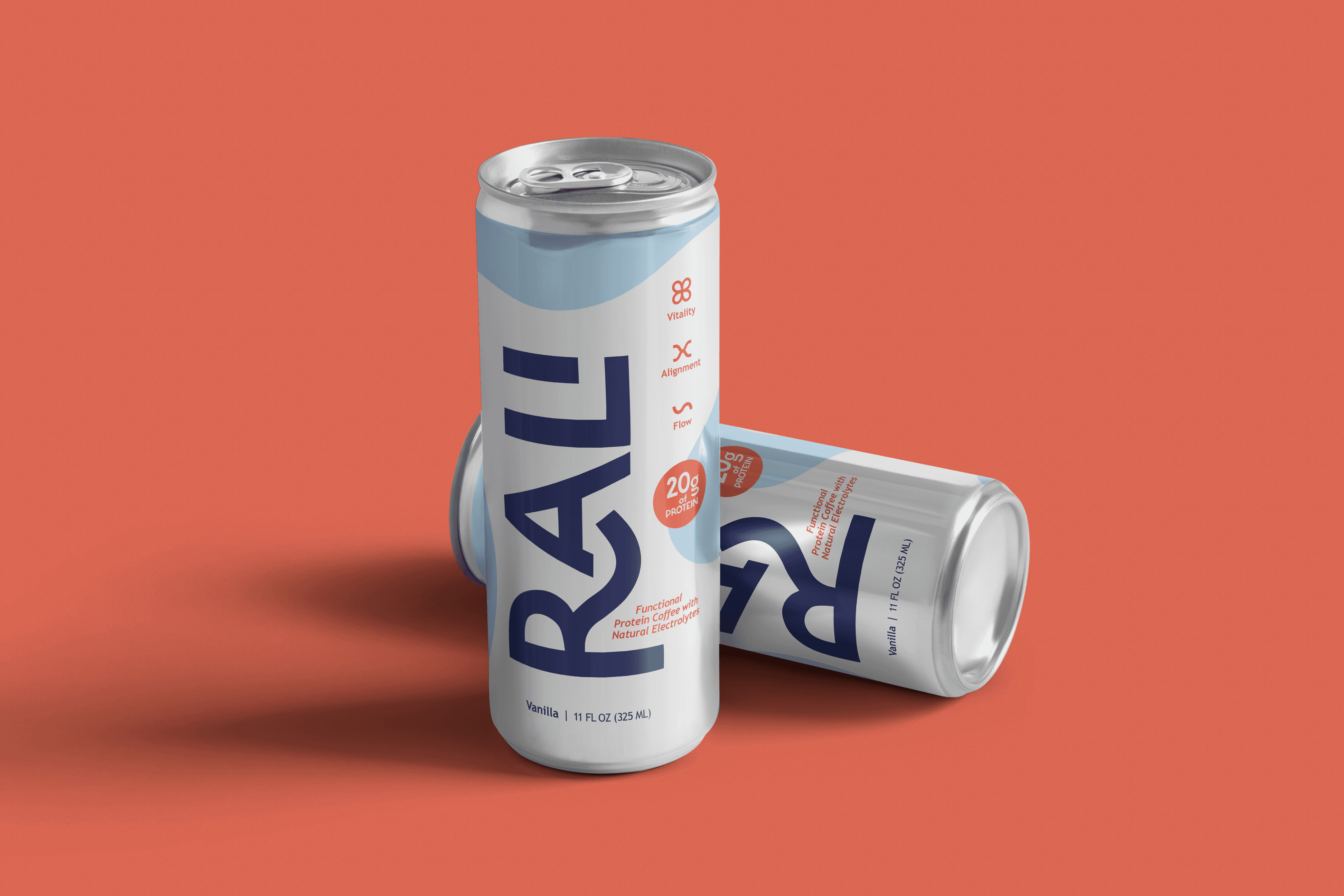 The functional beverage category is saturated and highly competitive. Shelves are dominated by legacy coffee brands and high-stim energy drinks that rely on intensity, masculinity, and exaggerated performance claims. Rali needed to clearly communicate its differentiators, including protein, electrolytes, and coffee-based energy, while avoiding the visual and tonal clichés of the category. Our goal was to establish immediate shelf clarity and position Rali as a credible, modern alternative.