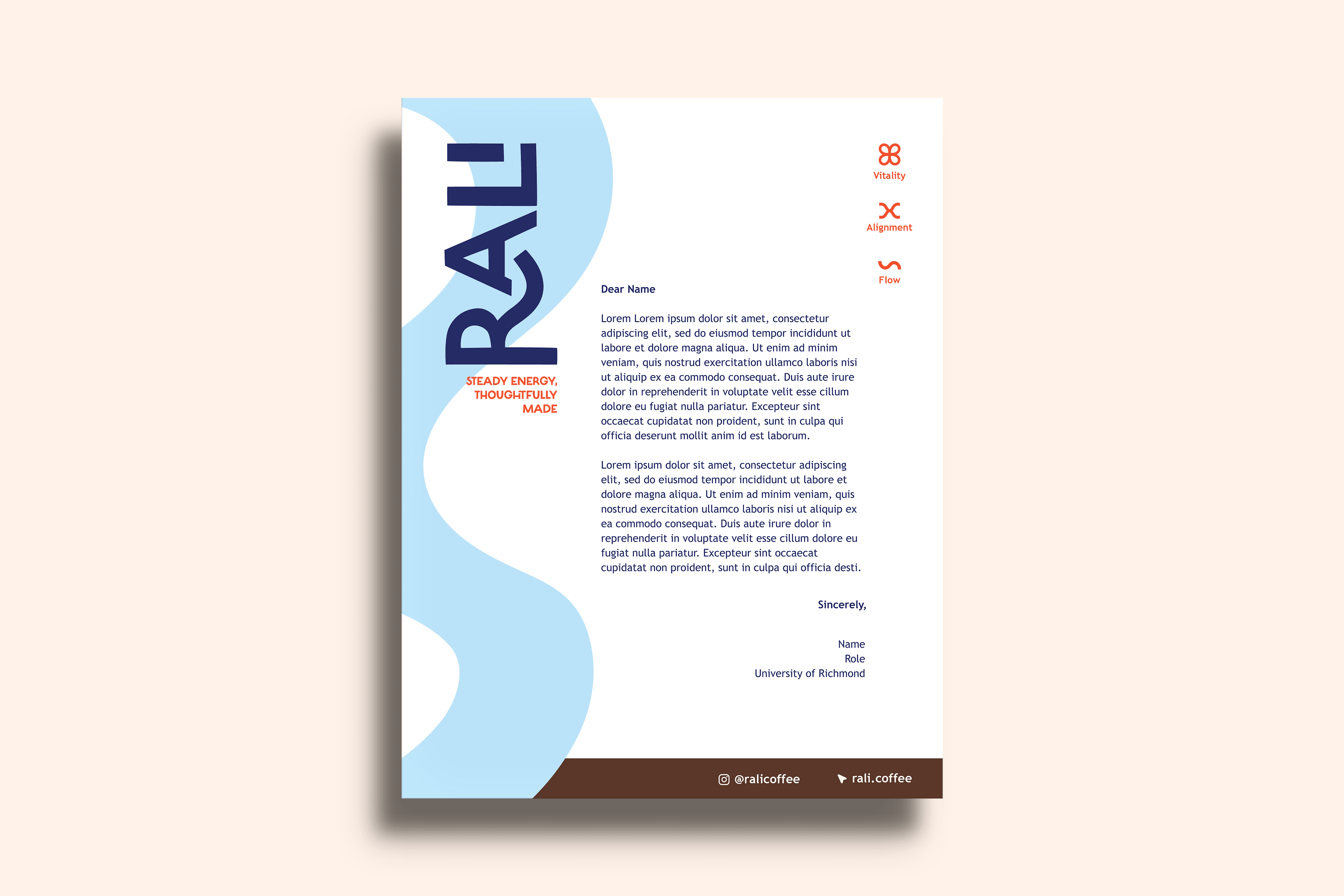 Rali was developed through a partnership between the University of Richmond’s Benchtop Innovation Program and VCU Brandcenter. The Richmond team led product formulation, sourcing, and business development, while our team served as the creative agency, leading naming, positioning, visual identity, packaging, and launch execution.