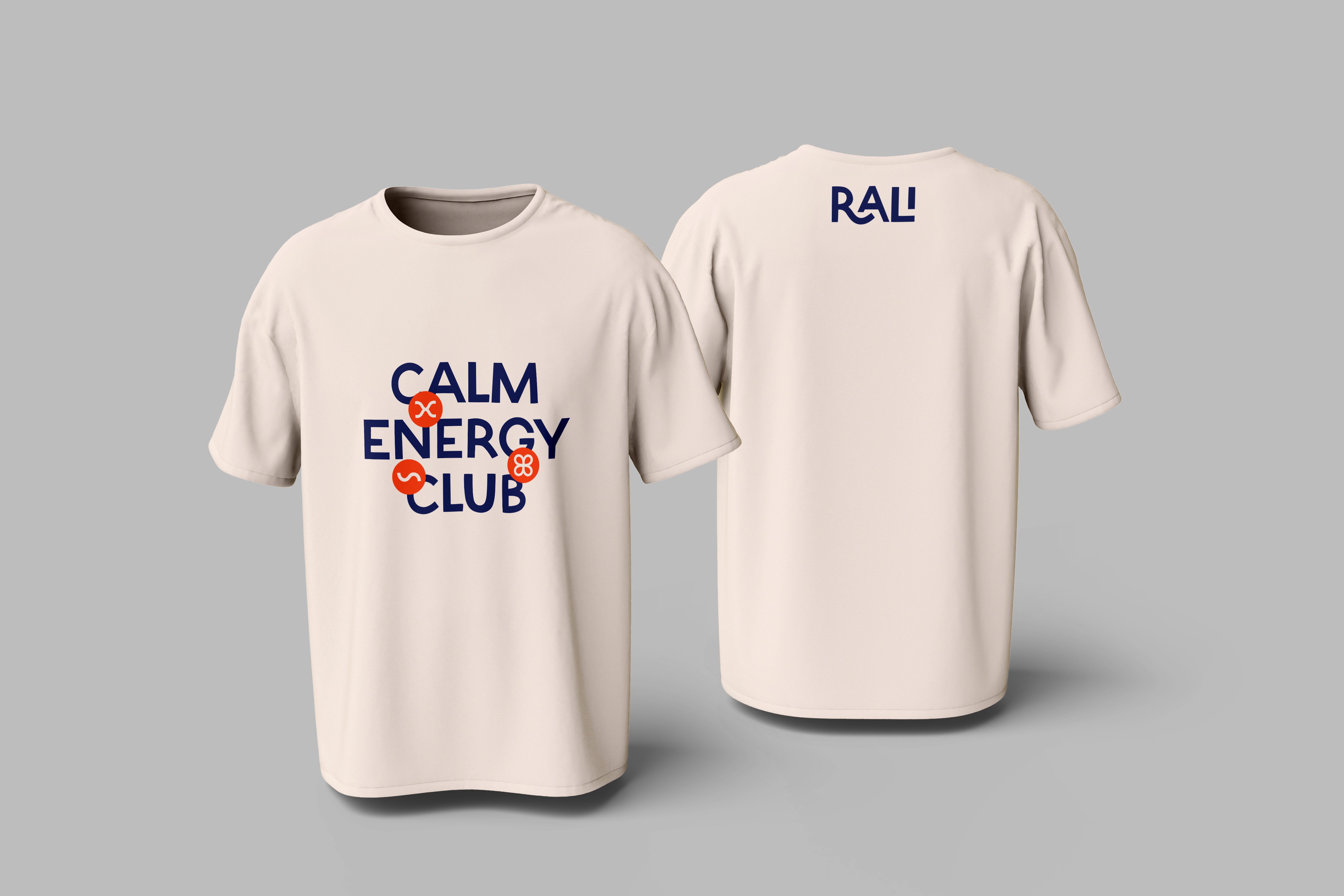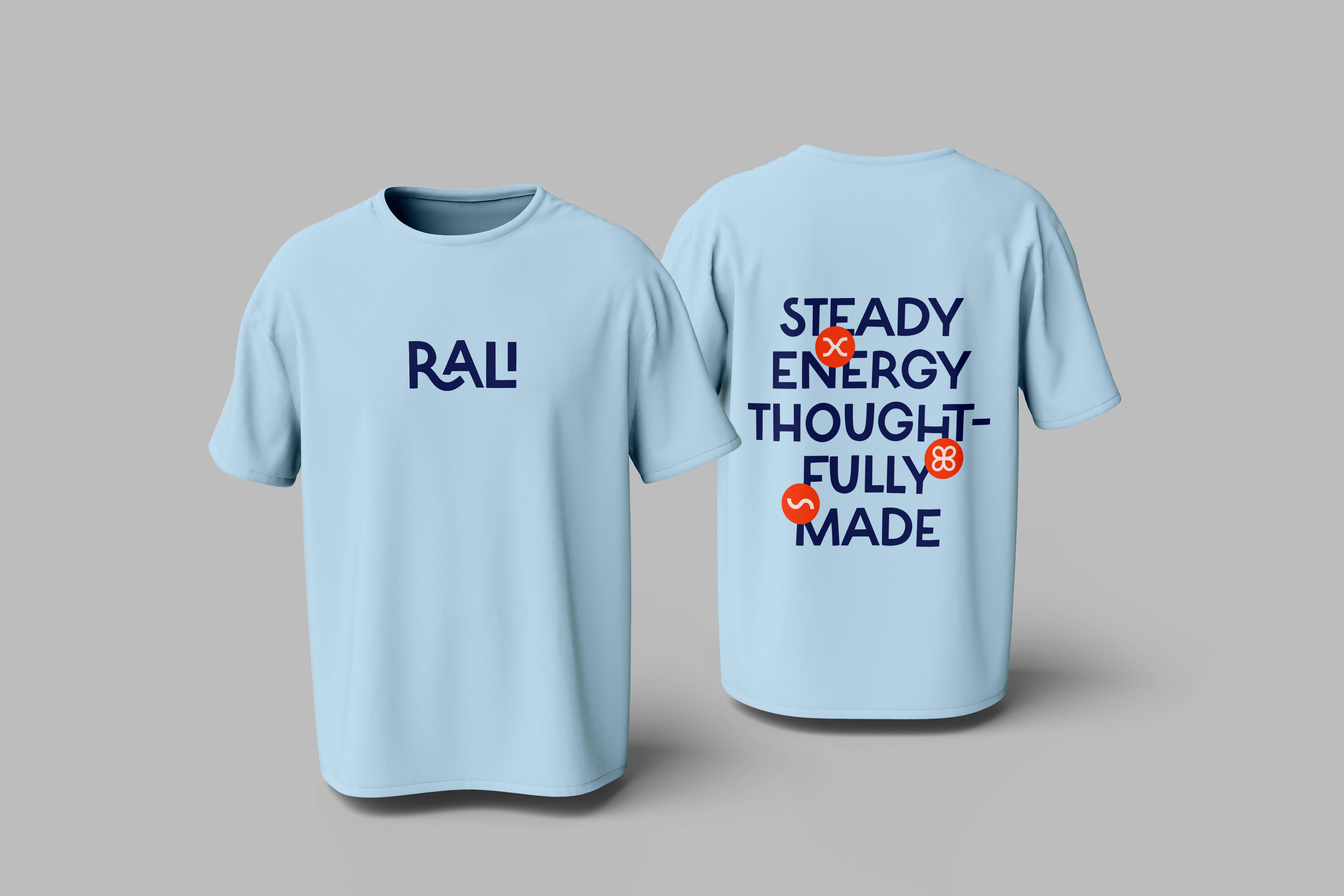Built around steady energy and functional clarity, Rali combines 20g of protein, electrolytes, and coffee-based caffeine to support sustained performance. The visual system reflects this philosophy through structured typography and fluid wave forms that communicate movement without chaos. A palette of navy, rich brown, and muted blue balances strength and clarity, while orange accents highlight functional benefits. The result is a calm yet confident presence in a category defined by overstimulation.