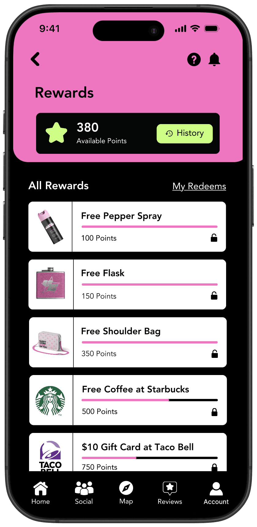 The rewards feature allows users to earn points by engaging with the app, which can then be redeemed for exclusive rewards. Users can track their available points and redemption history while browsing a variety of reward options, such as items, gift cards, and perks. This feature encourages interaction and provides tangible benefits, making the experience fun and rewarding.