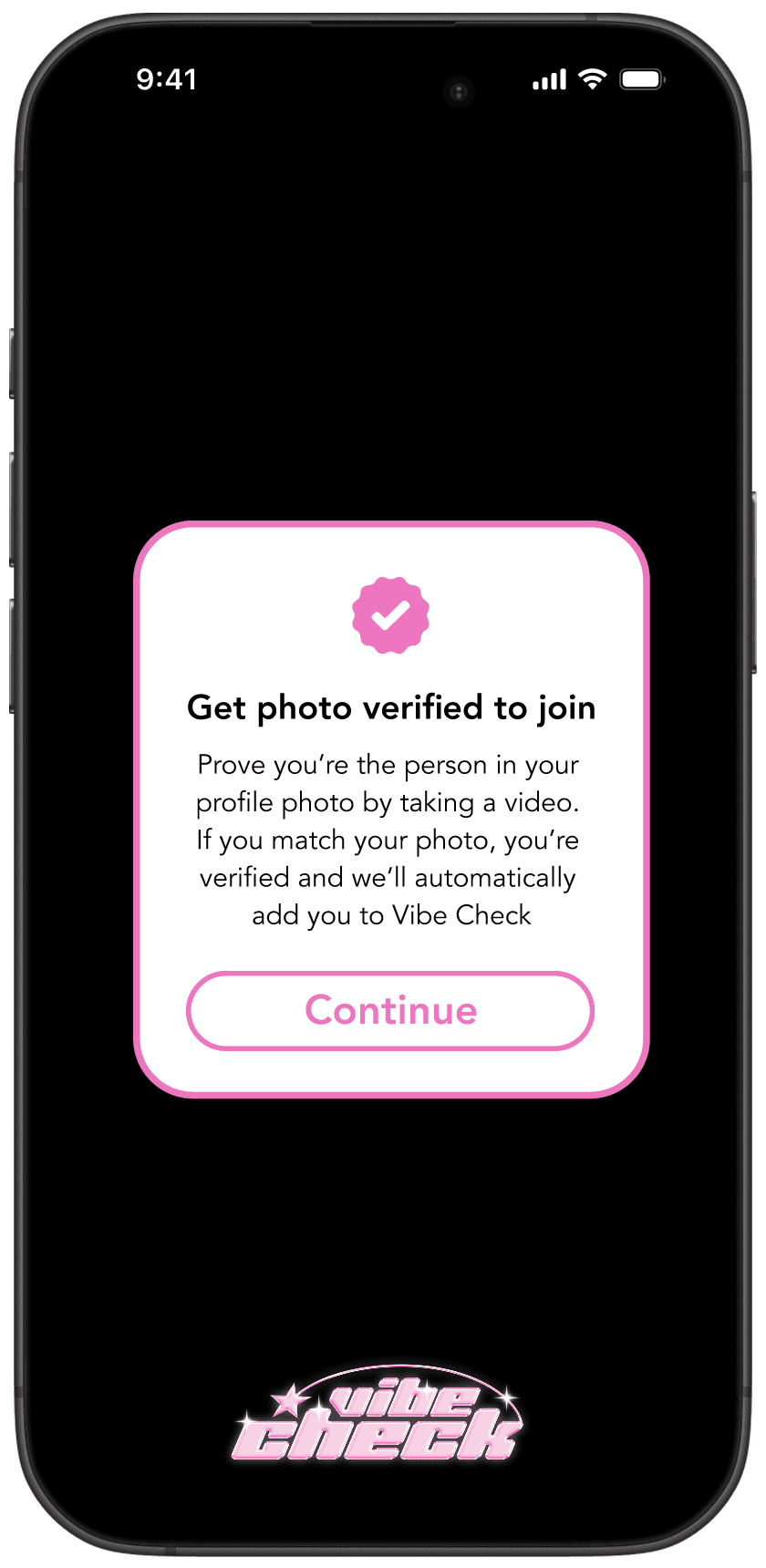 To join Vibe Check, you’ll need to complete a quick photo verification process using a video selfie. This ensures a safe and authentic community by verifying your photos. Your data is securely handled and helps maintain trust and integrity within the app.