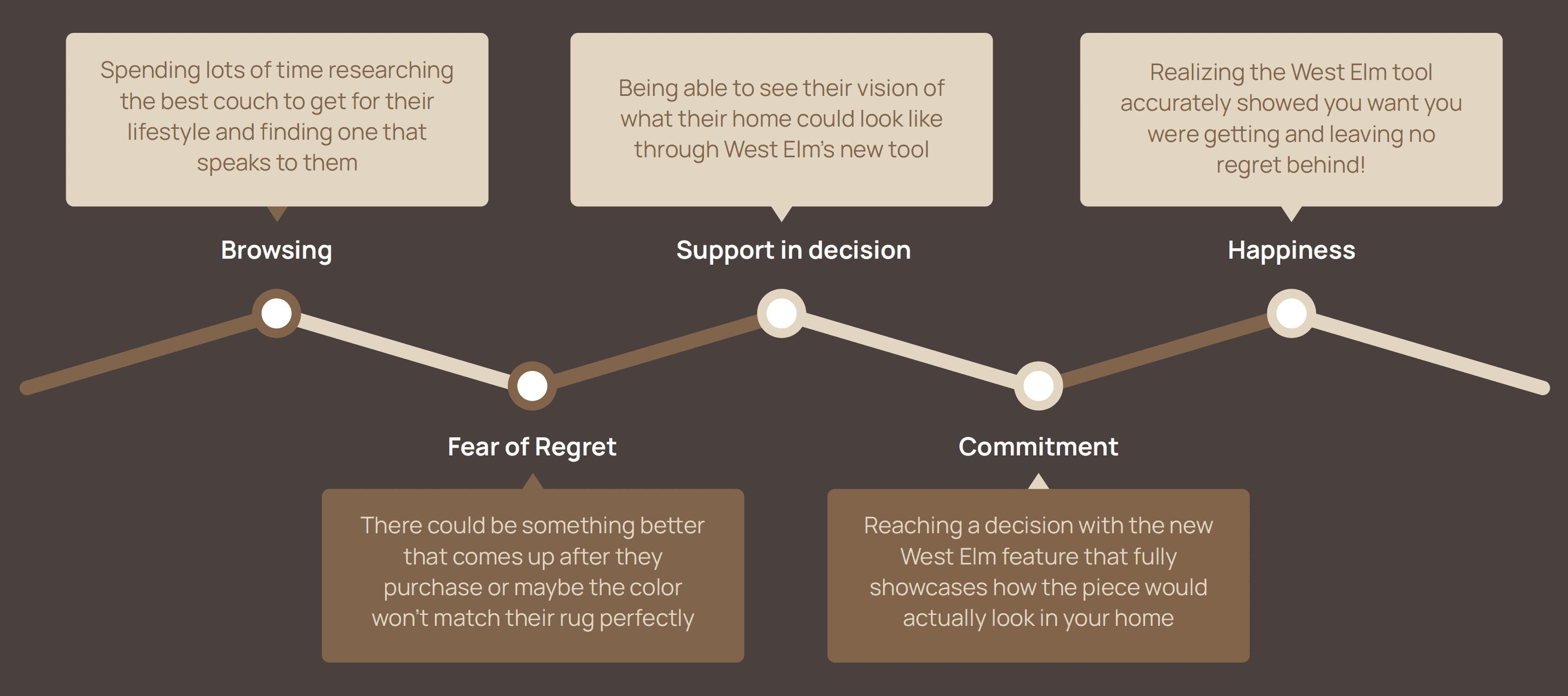 This project began with a challenge to identify a problem within an existing brand and develop a solution that could be brought to life through both product and campaign. We were assigned West Elm, a brand known for modern design, but whose digital experience does not fully support the complexity of furniture decision-making. While the brand positions itself as a design leader, its current tools fall short in helping customers feel confident in their purchases.