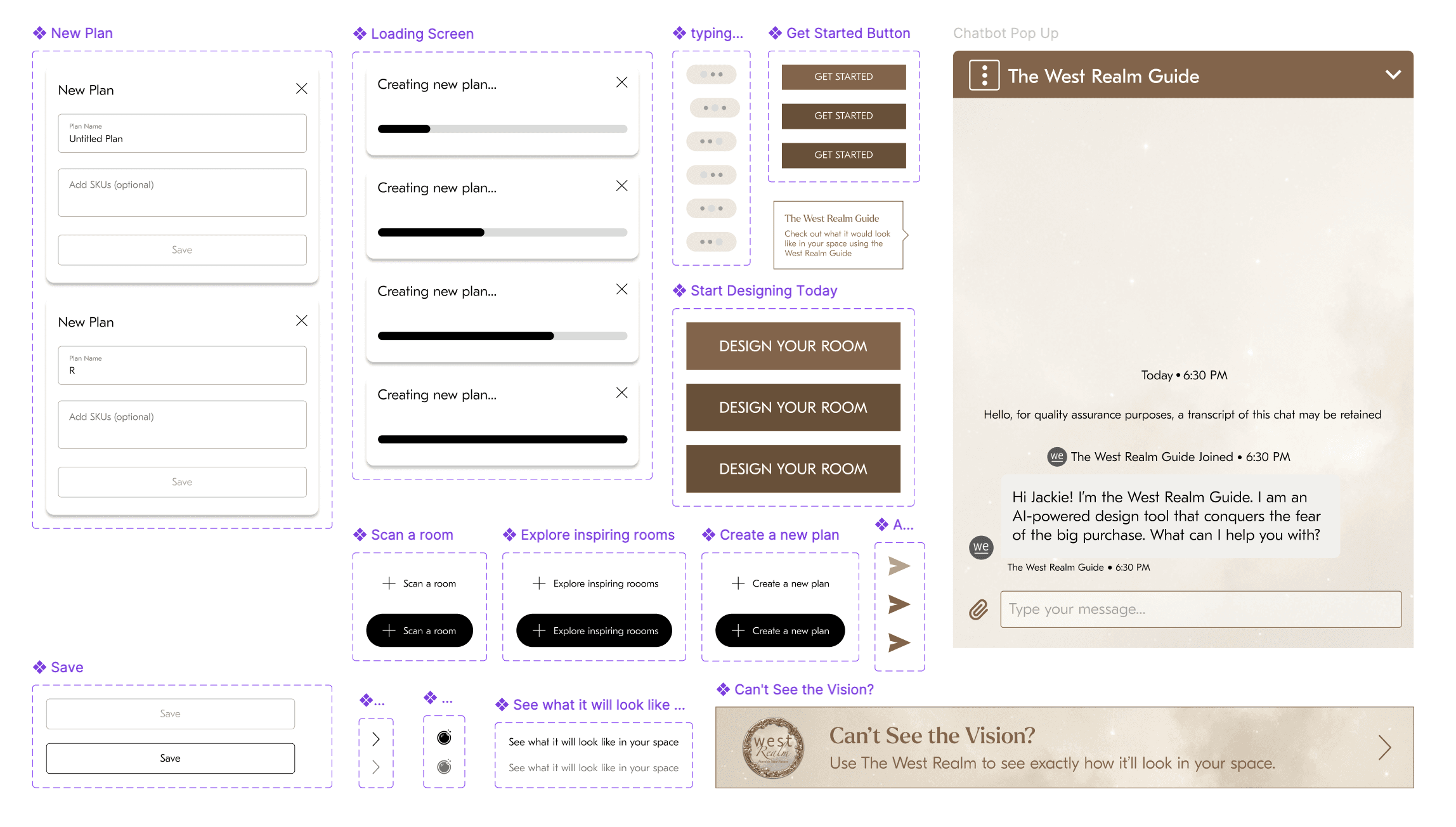 West Realm enhances this experience by introducing a conversational layer within the room planner. Instead of navigating the process alone, users are guided step by step through a personalized design journey.